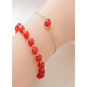 Bộ 2 vòng tay nữ đá thạch anh đỏ 8mm mix bi tròn cao cấp cho Nữ hút Lộc Tài Duyên
