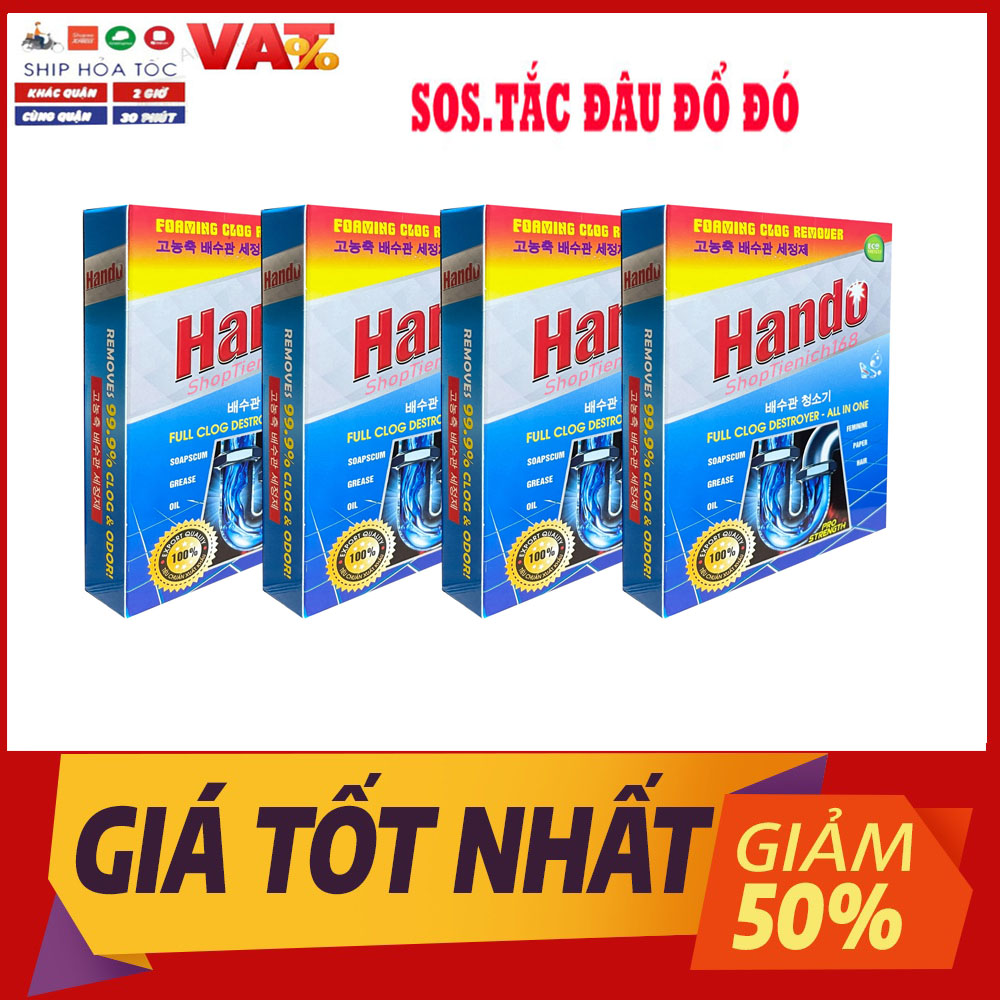 - Bột thông cống xuất khẩu Hando 100Gr với công thức tiên tiến, các thành phần hóa học chuyên dụng, độ tẩy cực mạnh sẽ xoáy tan mọi cặn bẩn trong đường ống một cách hiệu quả.