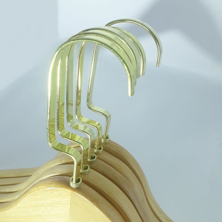 Sản phẩm được sơn PU màu vàng sang trọng sang trọng, điểm đặc biệt khác với các mẫu hàng rẻ trên thị trường là đầu móc thay vì được thiết kế tròn và gắn cố định thì phần đầu móc nay đã được thiết kế bằng inoc vuông mạ vàng vô cùng chắc chắn và sang trọng,khắc phục hoàn toàn tình trạng treo đồ nặng hoặc lâu ngày bị cong hoặc bung mộng.