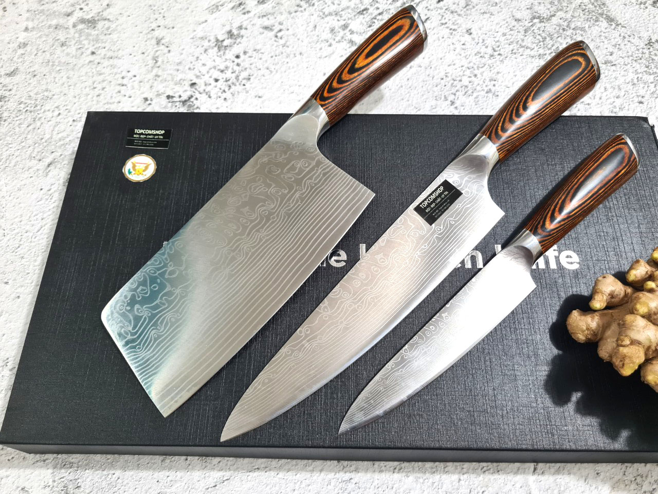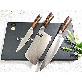 Bộ 3 Dao, Bộ Dao Nhật Bản, Bộ Dao Lưỡi Thép, Bộ Dao Nhà Bếp - Có Chuôi Có Bao Da
