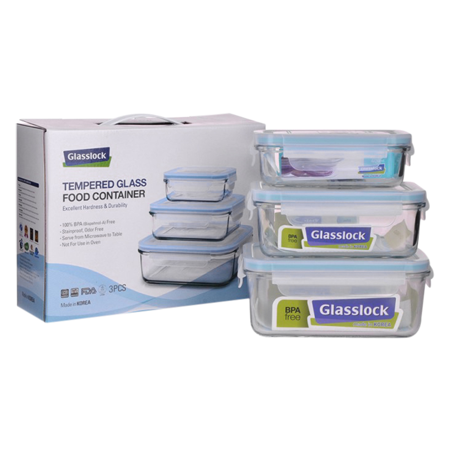 _x000D_ - Bộ 3 Hộp Thủy Tinh Hình Chữ Nhật Glasslock GL135 (400 + 1000 + 2000 ml) được sản xuất hoàn toàn từ những nguyên liệu tự nhiên. _x000D_ - Sản phẩm có thể