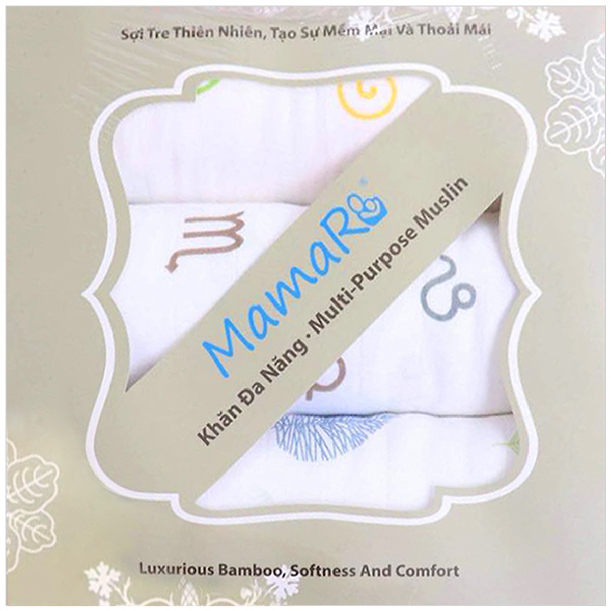 • Tên sản phẩm: Bộ 3 khăn đa năng vải sợi tre cho bé 120x120 Mamaru MA-KDN03