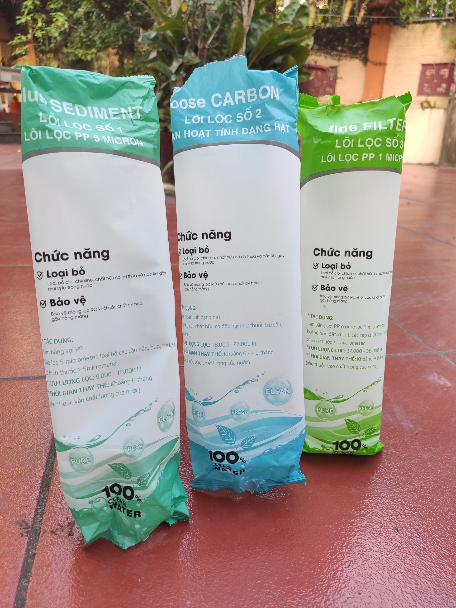 Bộ Combo bao gồm: 1. 3 LÕI SEDIMENT: - Chức năng của lõi Sediment: Loại bỏ các chấy cặn, bẩn, tỉ sét, bọ gậy, rong rêu... kích thước lớn hơn 1micron - Thời gian thay