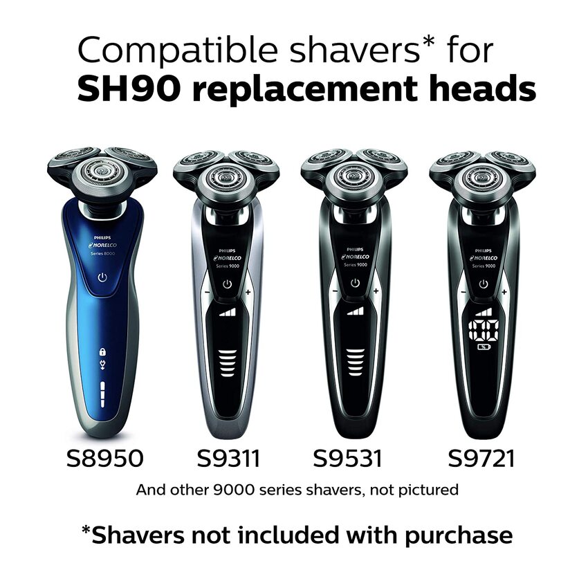 - Đầu thay thế SH90 tương thích với các dòng máy cạo râu Philips series 9000 (S9xxx) như S9311, S Và series 8000 (S8xxx)