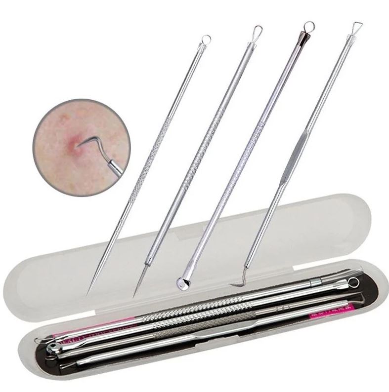 ✨Bộ 4 Cây Nặn Mụn Lấy Mụn Đầu Đen Tại Nhà Chuyên Nghiệp Bằng Kim Loại Cao Cấp