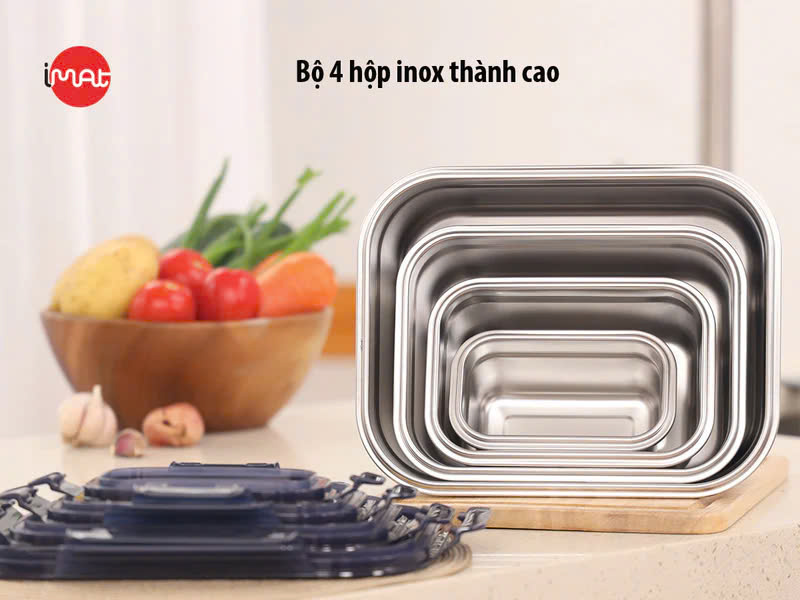Inox 304 an toàn, siêu nhẹ, sử dụng đa năng với tổng dung tích 5.92 lít, Bộ 4 Hộp Inox cao cấp là giải pháp lưu trữ thực phẩm hiệu quả cho mọi gia đình. Đặc biệt, có thể sử dụng được trong lò vi sóng. Sử dụng an toàn với nhiệt độ từ - 40 độ - 400 độC