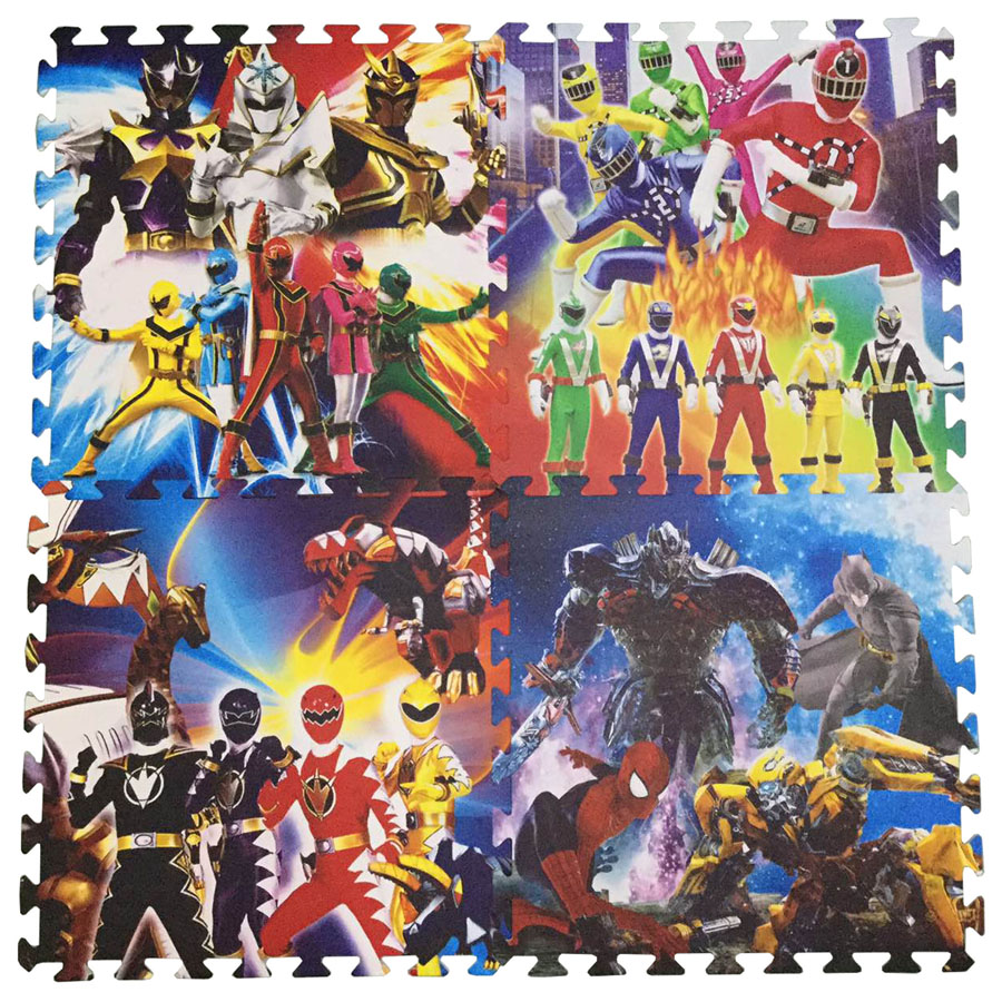 Bộ 4 tấm Thảm xốp lót sàn an toàn Thoại Tân Thành hình năm anh em siêu nhân (60x60cm) được làm từ chất liệu xốp EVA mềm mại không chứa chất độc hại.
