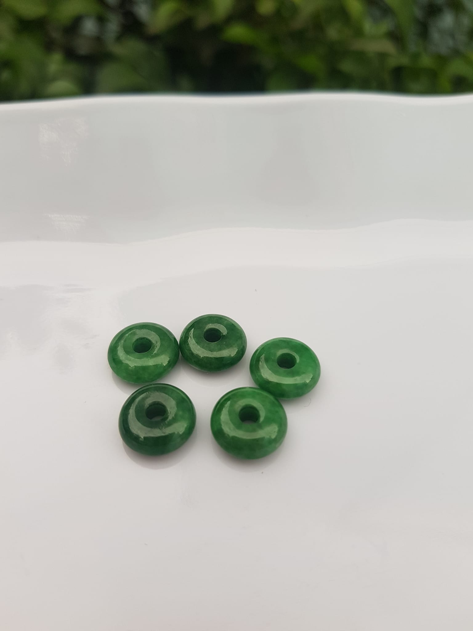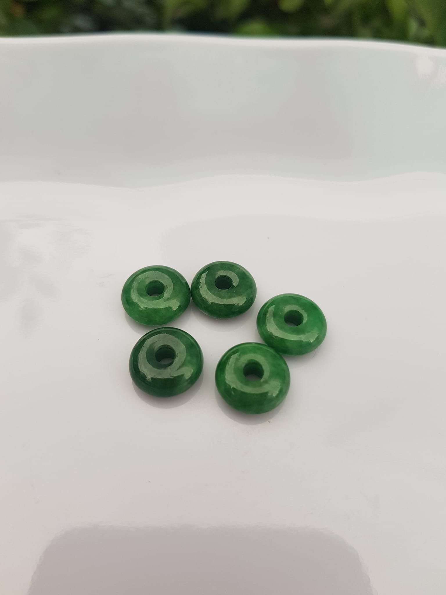 ✨Bộ 5 đồng tiền đá cẩm thạch tự nhiên xanh ngọc đậm đều đẹp Nữ Phối vòng tay,mặt dây chuyền vàng đeo cực kỳ xinh xắn ạ Size hạt 9mm x dầy 3,8mm x lỗ ở giữa đk 2mm mệnh Thủy Mộc Hỏa ạ