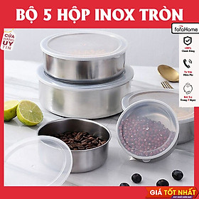 -Combo 5 hộp đựng thực phẩm inox nhiều kích thước, cho bạn thoải mái bảo quản thực phẩm.