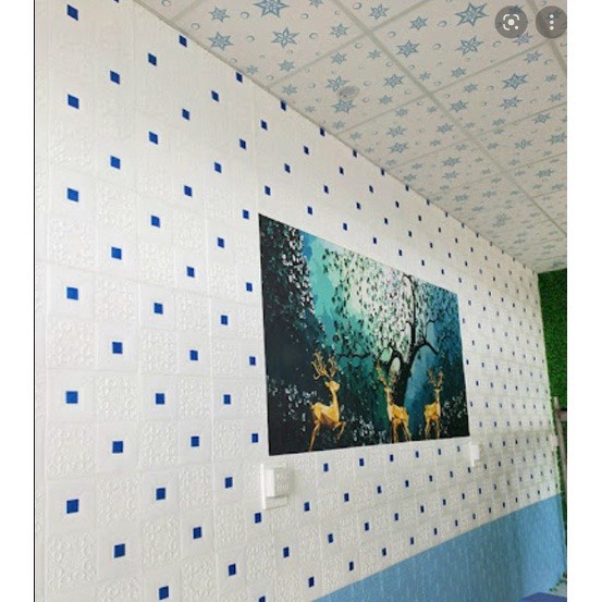 Độ dày chuẩn : 3mm Kích thước: 70*77 ( ngang 70cm, cao 77cm) Sẵn keo ở mặt sau, lột ra là dán     Công dụng tấm xốp : ️Dán che khuyết điểm tường mốc,