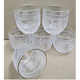Chất liệu: thủy tinh Bộ sản phẩm gồm: 6 cốc thủy viền vàng Thiết kế đẹp mắt, phù hợp tiện dụng Độ bền cao, chịu nhiệt tốt, hạn chế nứt vỡ do tác động của