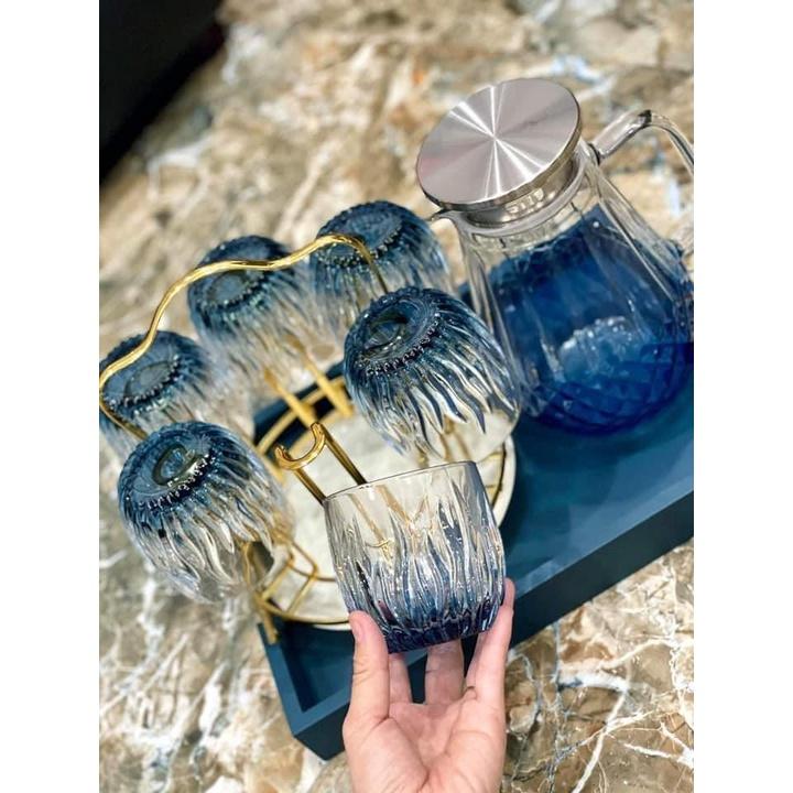 Bộ khay bình nước 6 cốc thuỷ tinh cao cấp