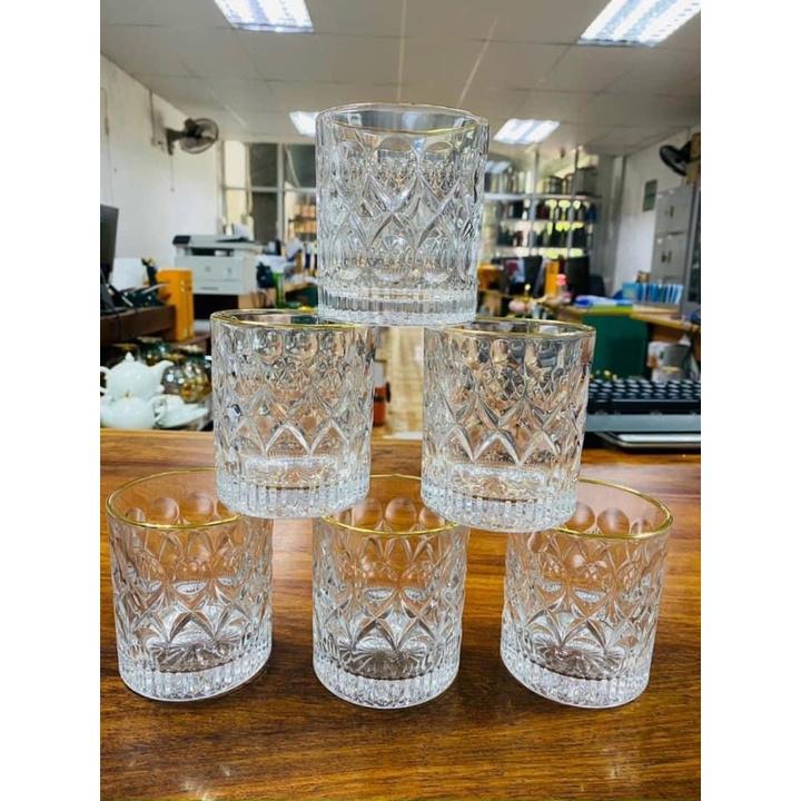 ✨BỘ 6 CỐC UỐNG NƯỚC HOẶC RƯỢU TÂY HỌA TIẾT KHẢM VIỀN VÀNG SANG TRỌNG