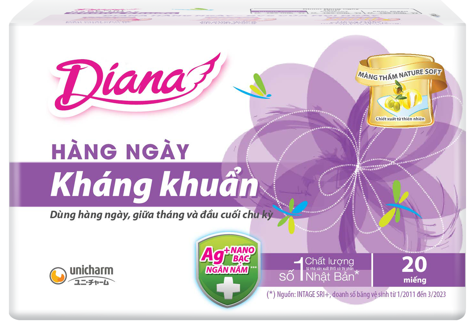 - Lõi bông siêu thấm với công thức kháng khuẩn có Nano bạc, tăng cường khả năng kháng khuẩn, giúp bạn luôn sạch sẽ và thoải mái.