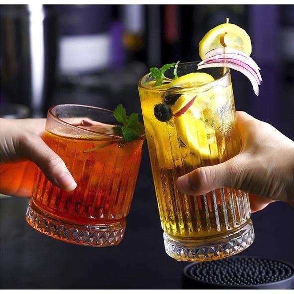 Ly Thủy Tinh Chịu Nhiệt Thân Ly Vân Sọc Miệng Ly Mạ Vàng Đế Kiểu Dáng Kim Cương 445ml Sang Trọng - Cốc Thủy Tinh Cao Cấp