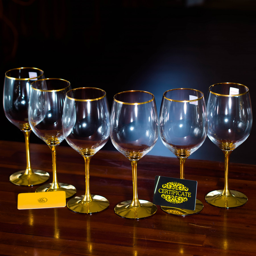 Bộ 6 ly uống vang đỏ 450 ml pha lê mạ vàng 24k Tiệp Khắc