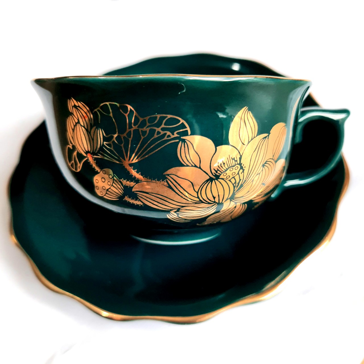 BỘ ẤM CHÉN VẼ VÀNG 24K VỚI HỌA TIẾT HOA SEN