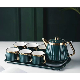 Bộ ấm chén kèm khay sứ pha trà cà phê siêu sang cho ngày Tết- Bộ cốc chén pha trà cà phê kèm khay bằng sứ