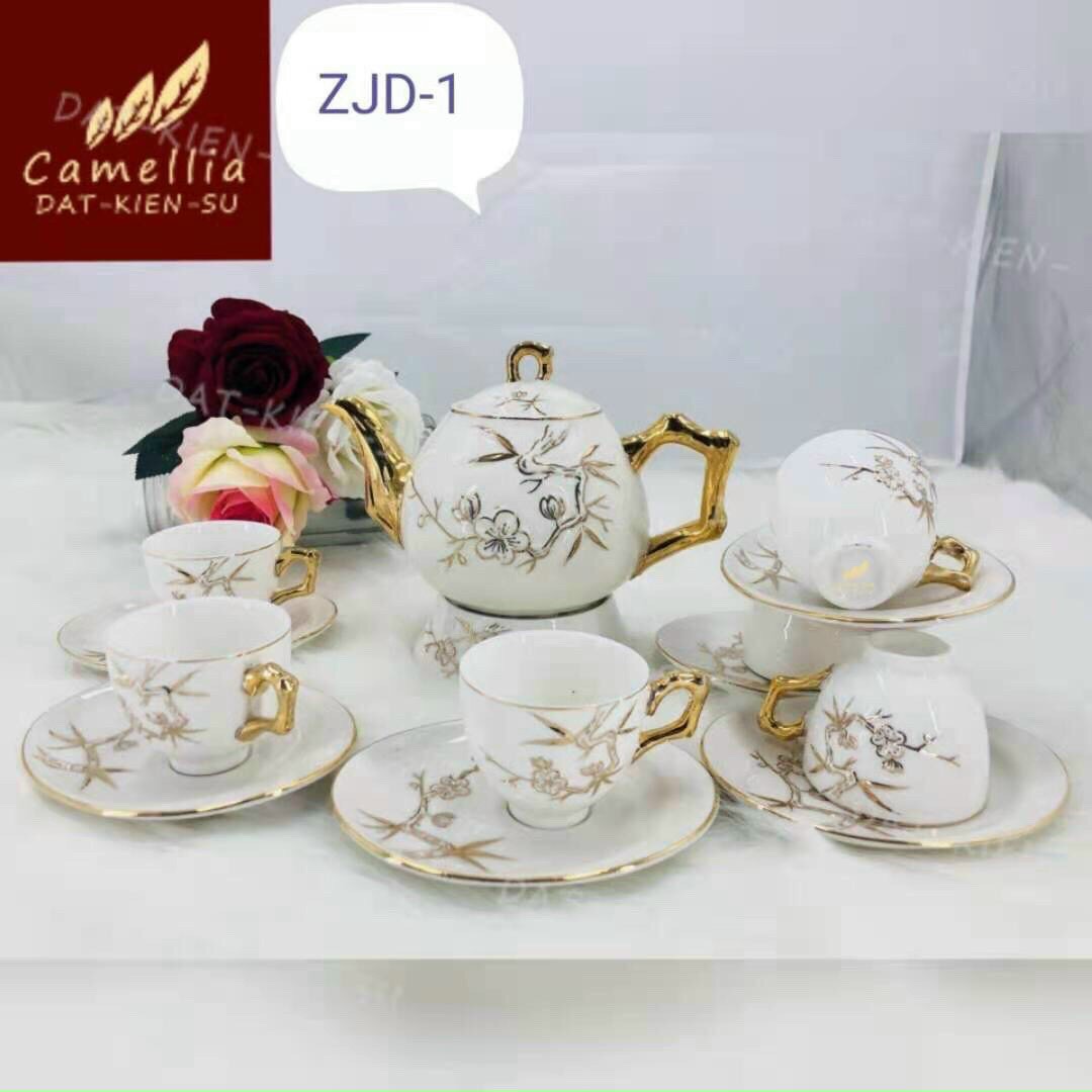 Bộ ấm chén Bát Tràng cao cấp, Bộ ấm trà Bát Tràng đẹp, bộ ấm chén pha trà đẹp, bo am chen Bat Trang