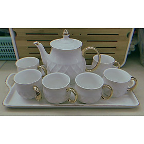 Một bộ sản phẩm bao gồm: 01 ấm, 01 đĩa ấm, 06 chén và 06 đĩa chén.    Bộ sản phẩm được làm từ chất liệu gốm cao cấp, bảo đảm an toàn vệ sinh