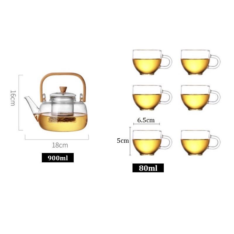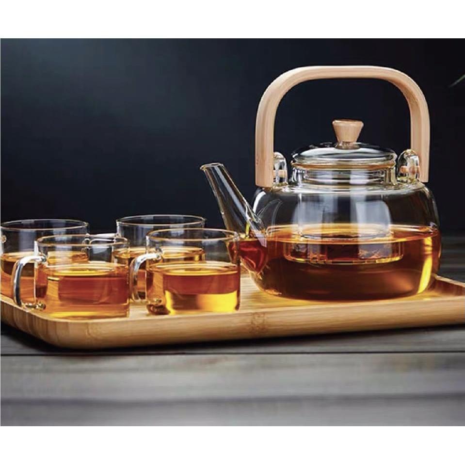 ✨Bộ ấm chén thủy tinh pha trà tay gỗ cao