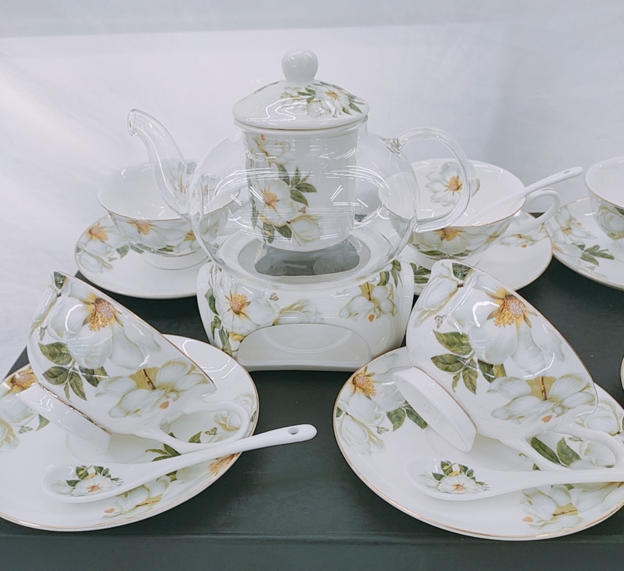 Bộ ấm chén chất liệu sứ xương cao cấp với thiết kế đẹp ,tiện dụng chất liệu cao cấp,dễ bảo quản ,vệ sinh.