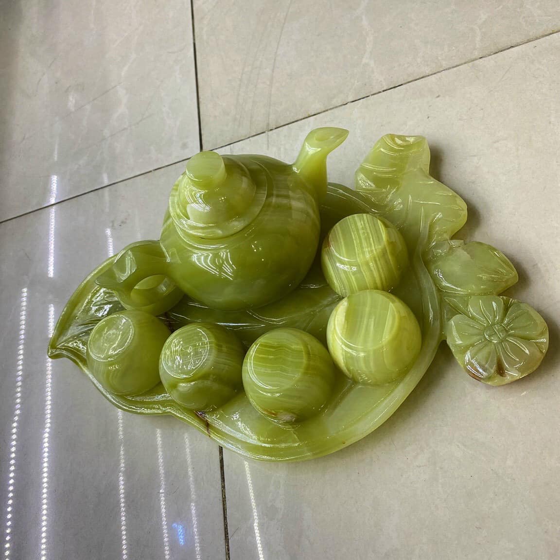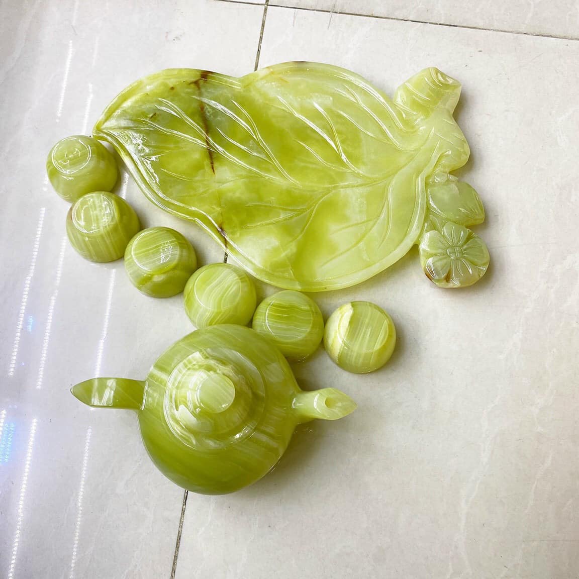 Chất liệu: Đá ngọc Serpentine Bộ sản phẩm gồm: 7 dĩa, 6 ly và 1 ấm trà Dùng để uống trà hoặc làm quà biếu tặ