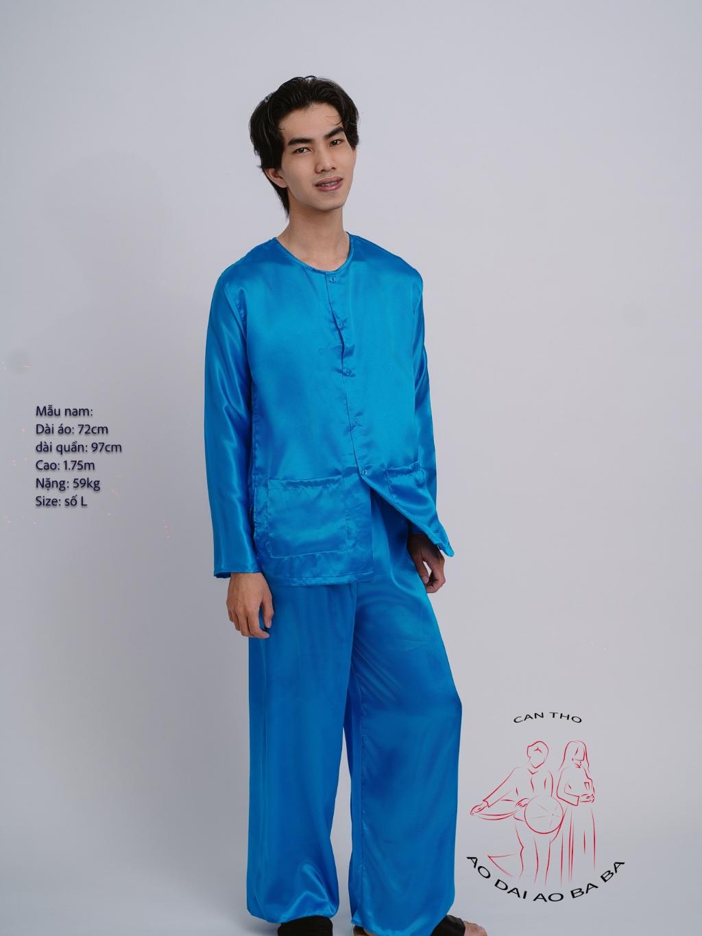 ✨Bộ áo bà ba Nam Phi bóng xanh dương- Có bộ bà ba Bigsize- may sỉ bà ba toàn quốc - May bộ bà ba theo yêu cầu