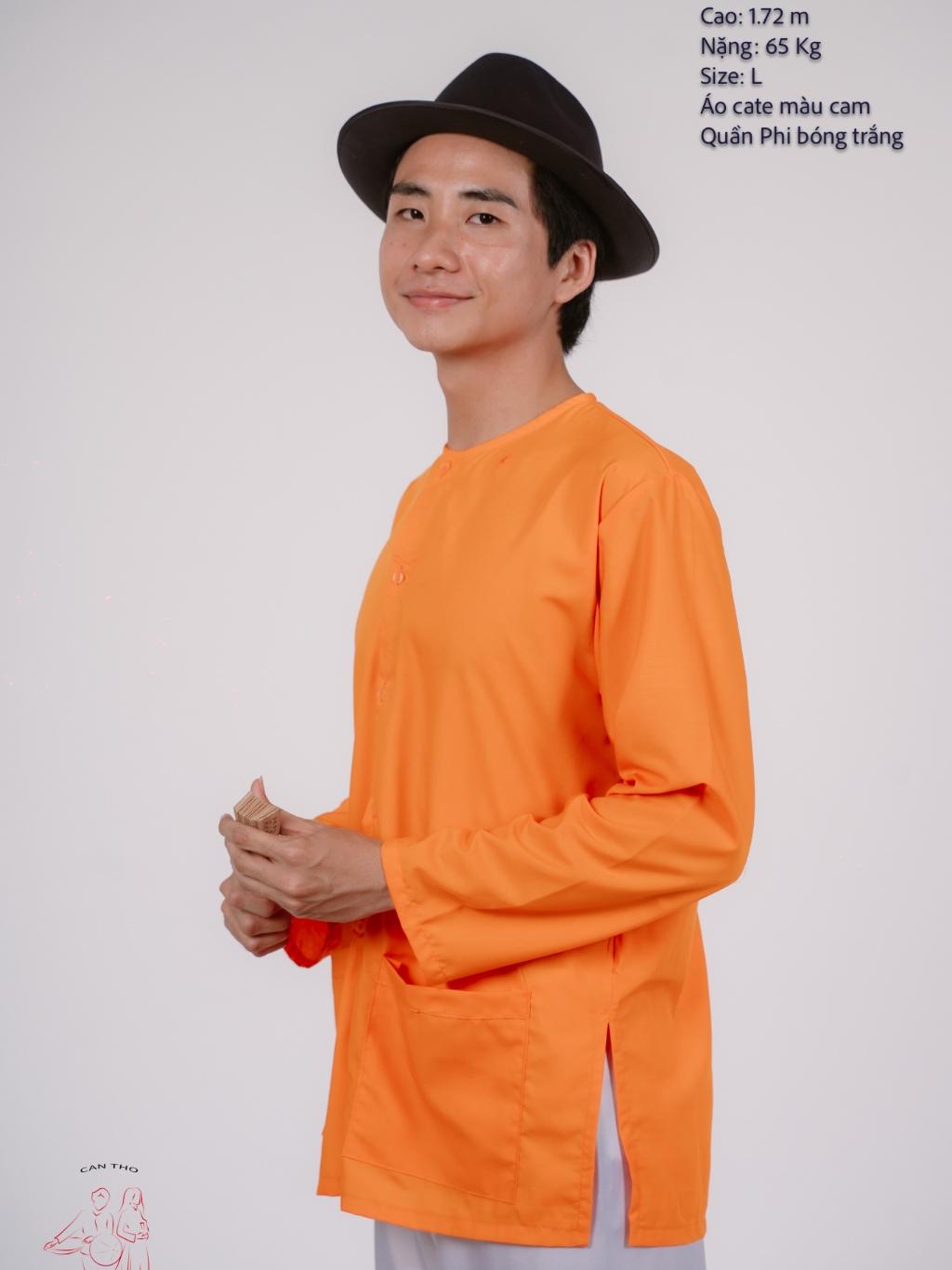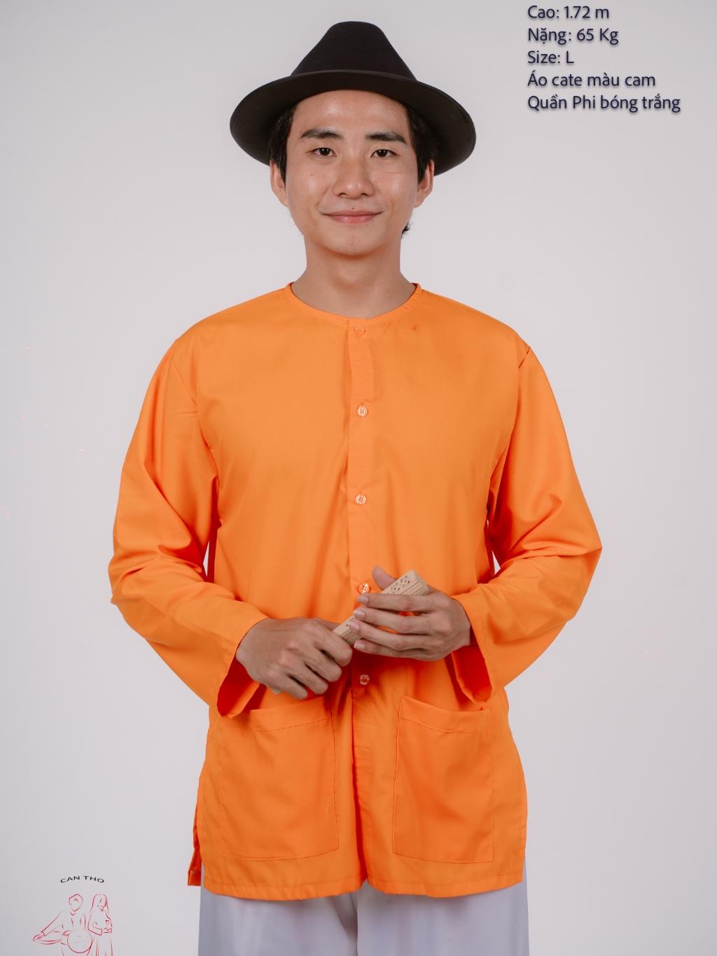 ✨Bộ áo bà ba nam phối áo cate cam+ Quần phi trắng - Có bộ bà ba Bigsize