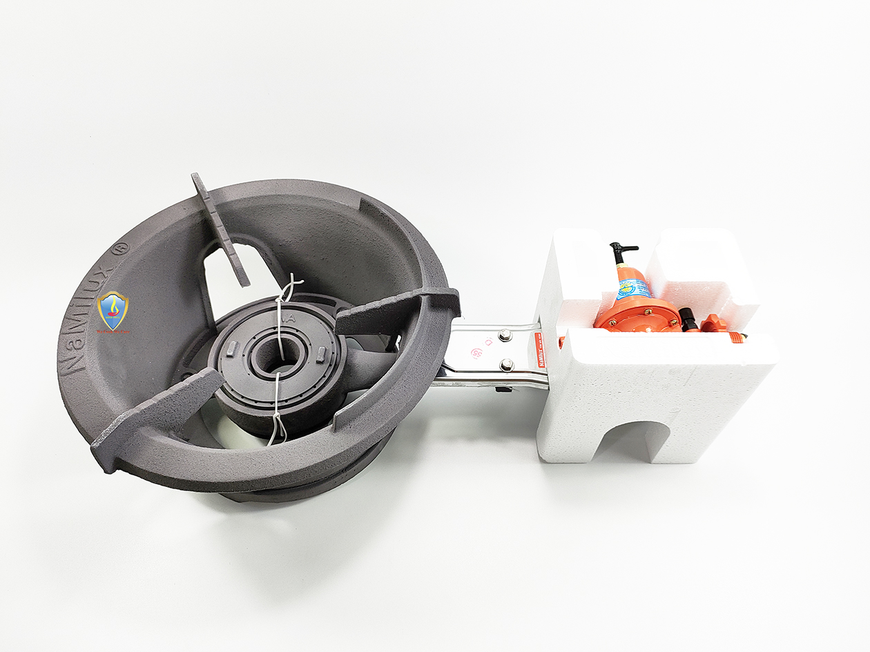 Bộ bếp khè công nghiệp Namilux NA-196 (Combo) là dòng sản phẩm chuyên về công nghiệp, rất hiệu quả, an toàn, tiết kiệm gas, độ bền cao, ổn định mang Thương hiệu uy tín Namilux. Bếp đang được sử dụng rộng rãi ở các nhà hàng, quán ăn, nhà ăn tập thể, khách sạn, trường học, bệnh viện, căn tin,... Combo sản phẩm này bao gồm 01 Bếp khè công nghiệp NA-196, 01 Van khè NA-537SH, 01 Đoạn 1,5 mét dây dẫn gas (H.P.G), và 02 Codê inox. Van NA-537SH kèm theo bếp có chế độ ngắt gas tự động (Nút Reset) khi gặp sự cố như dây dẫn gas bị tuột khỏi đầu nối, bếp gas, hoặc dây dẫn gas bị đứt hẳn. Đầu đốt bếp của bếp bằng gang được thiết kế lớn, chắc chắn. Với ngọn lửa lớn và mạnh mẽ, bếp khè công nghiệp Namilux sẽ giúp bạn nấu nướng nhanh chóng và tiết kiệm được nhiều thời gian hơn. Sử dụng bếp gas công nghiệp là giải pháp tiết kiệm chi phí, tiện lợi, an toàn. Cụm đánh lửa Magneto của bếp được sản xuất trên dây chuyền hiện đại, tiên tiến theo Tiêu chuẩn và Công nghệ của Nhật. Khả năng đánh lửa nhanh nhạy, nhẹ nhàng luôn đảm bảo cho bếp được ổn định về kỹ thuật và chất lượng. Thân bếp và tô đỡ bếp được đúc bằng gang nguyên khối, với độ dày cao và khả năng chịu nhiệt cao, cũng như chịu được trọng lượng lớn của vật dụng nấu nướng. Núm vặn bếp bằng nhựa được thiết kế lớn theo kiểu dáng thông dụng giúp người sử dụng rất dễ dàng thao tác bật, tắt, điều chỉnh độ lửa thật đơn giản và hiệu quả. NA-196 DÙNG HỆ THỐNG VAN, DÂY CAO ÁP (H.P.G - GAS ÁP LỰC CAO), TUYỆT ĐỐI KHÔNG SỬ DỤNG NA-196 VỚI HỆ THỐNG VAN, DÂY THƯỜNG - L.P.G (VAN DÂY GAS DÙNG VỚI BẾP GIA ĐÌNH). Đây là dòng sản phẩm rất thông dụng trong mọi lãnh vực sinh hoạt ngày ngày của rất nhiều gia đình vì tính hiệu quả bếp mang lại. Với mức giá hợp lý trên thị trường hiện nay, NA-196 đang được rất nhiều gia đình ủng hộ và tin dùng.