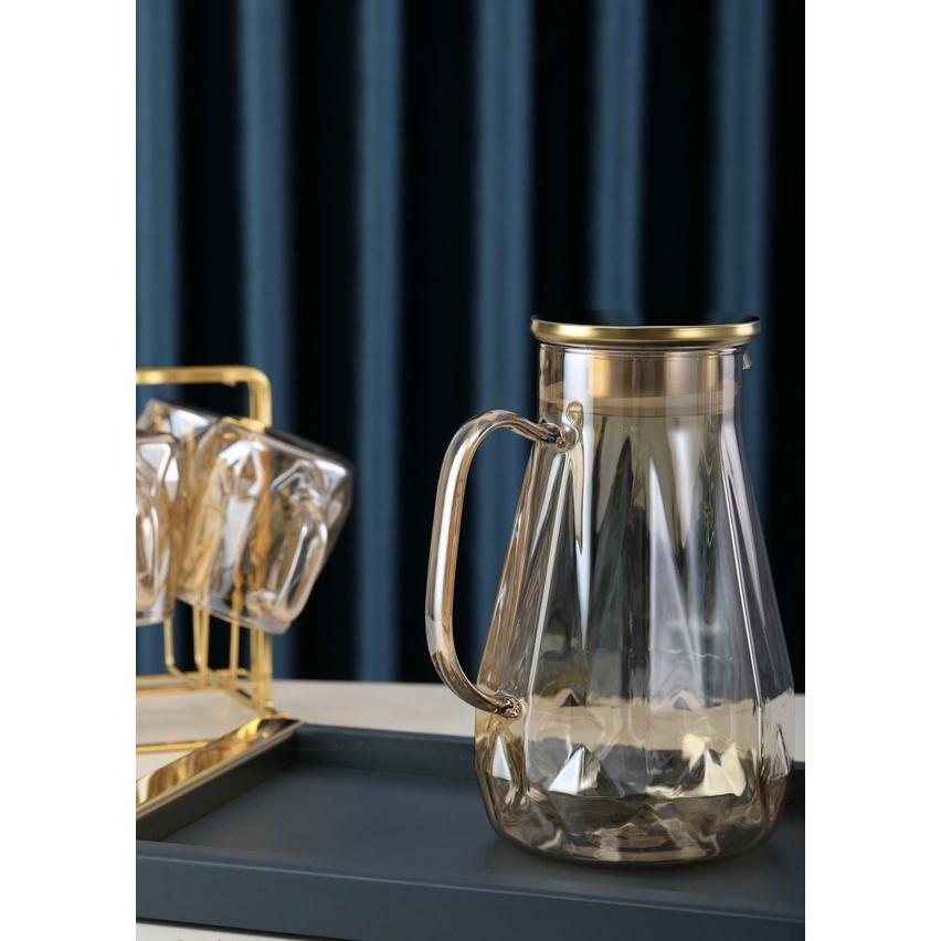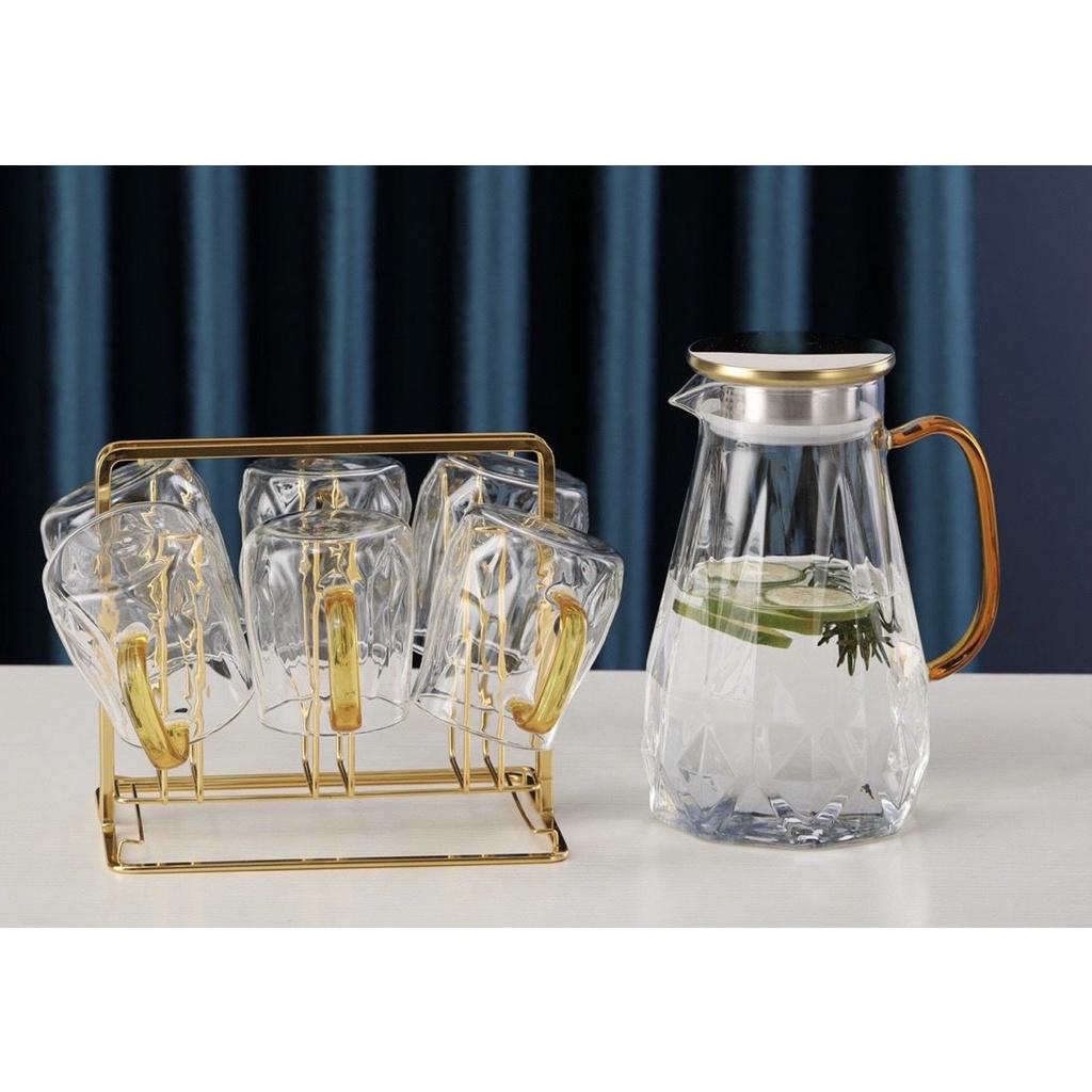 Bộ bình 6 cốc thủy tinh chịu nhiệt mạ vàng cao cấp