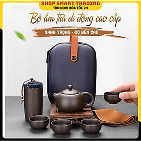 Bộ Ấm Chén Uống Trà Tử Sa Kèm Khay Có Túi Đựng Xách Tay, Đi Du Lịch, Dã Ngoại, Dùng Làm Quà Tặng
