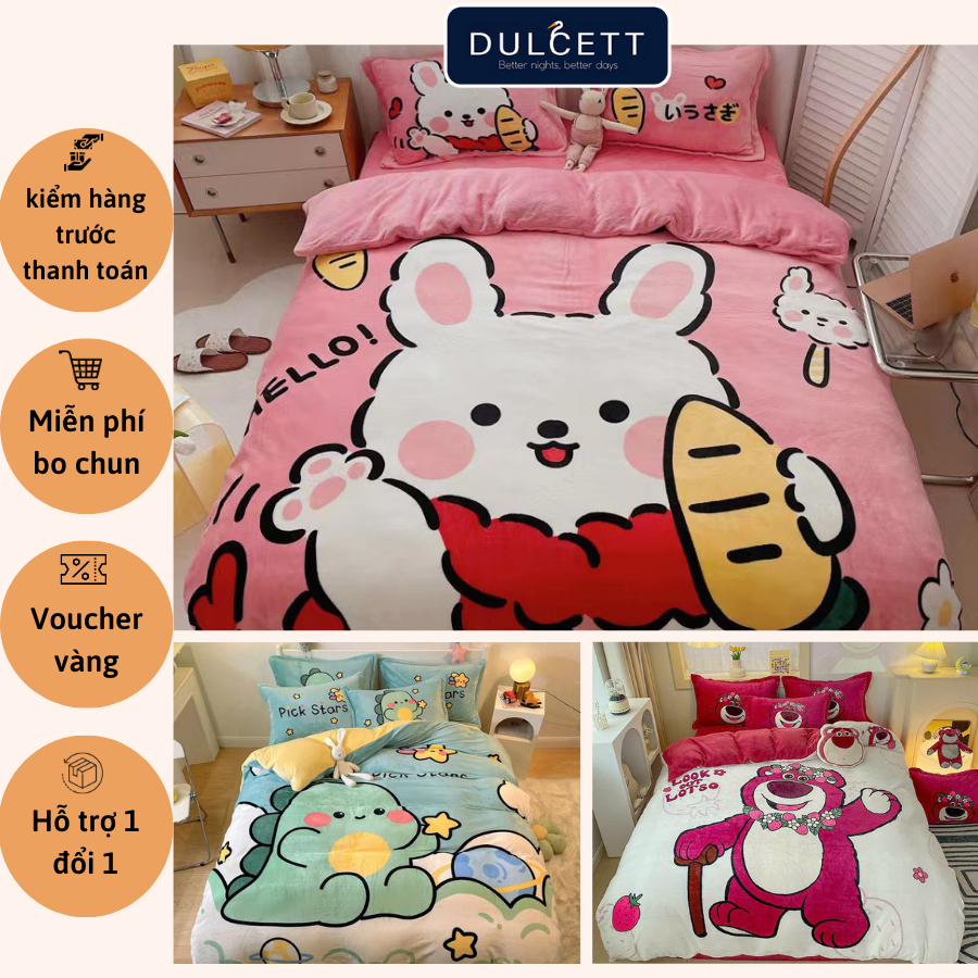 ̉ ̂́ - DULCETT BEDDING ( Nỉ tuyết sẽ phủ 1 lớp tuyết nên nhìn màu sẽ bị nhờ hơn nha ) Nguồn nguyên liệu thân thiện với làn da Với mật độ lông tuyết