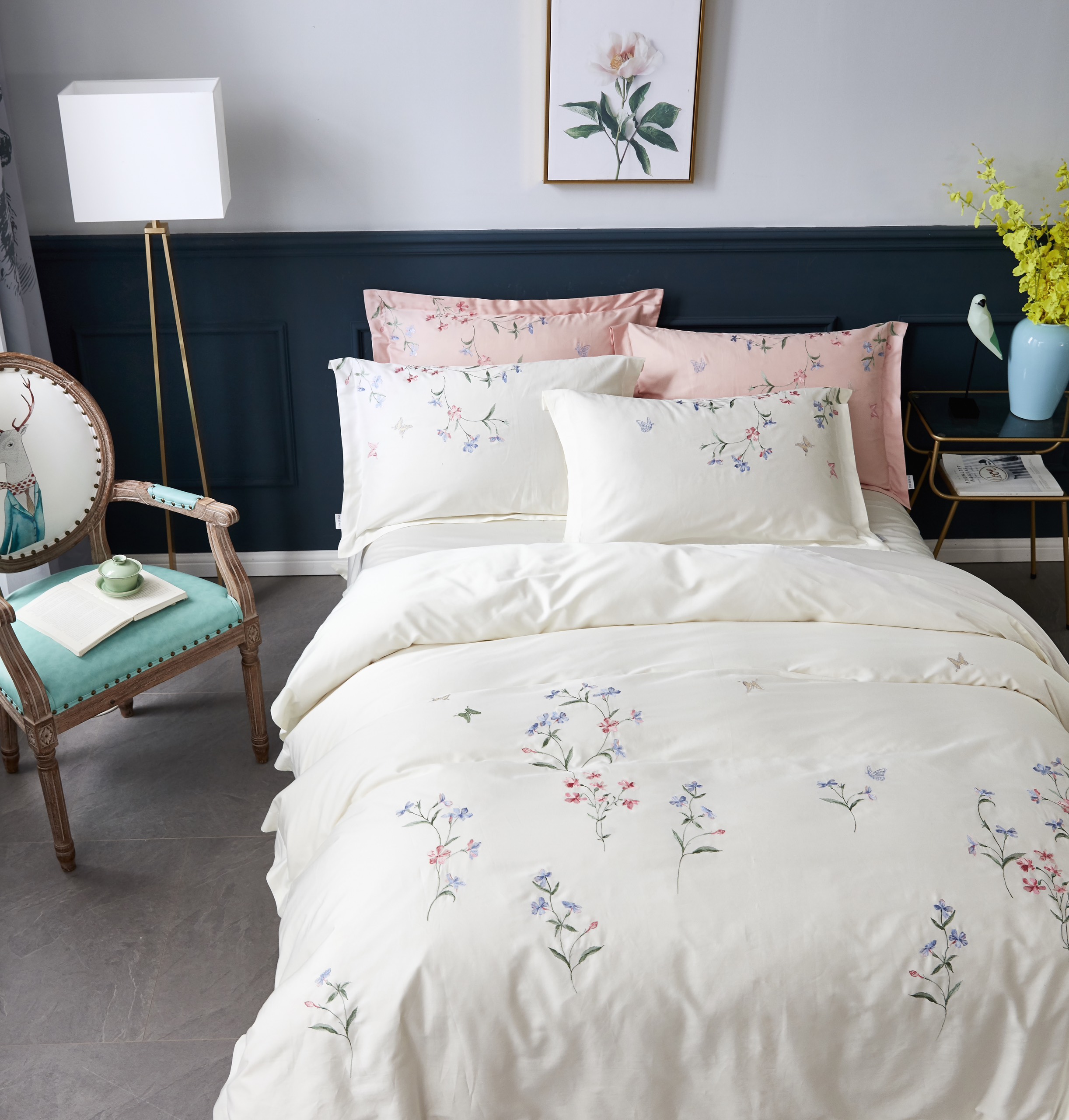 ✨Bộ chăn ra Casa Bello Home- Set Misha lụa satin thêu họa tiết thêu 5 món