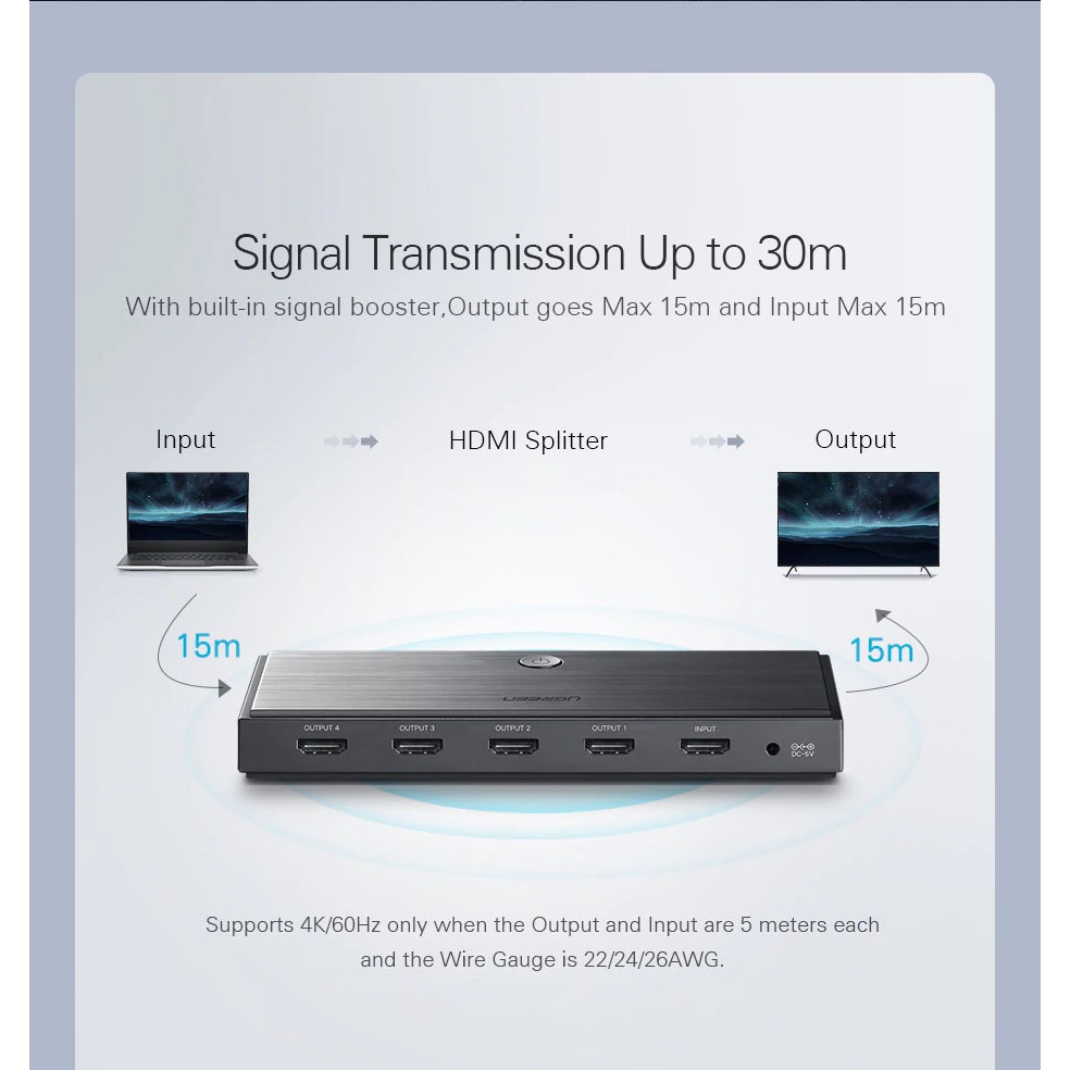 Bộ chia HDMI 1 ra 4 hỗ trợ 4Kx2K chính hãng Ugreen UG-40277 cao cấp