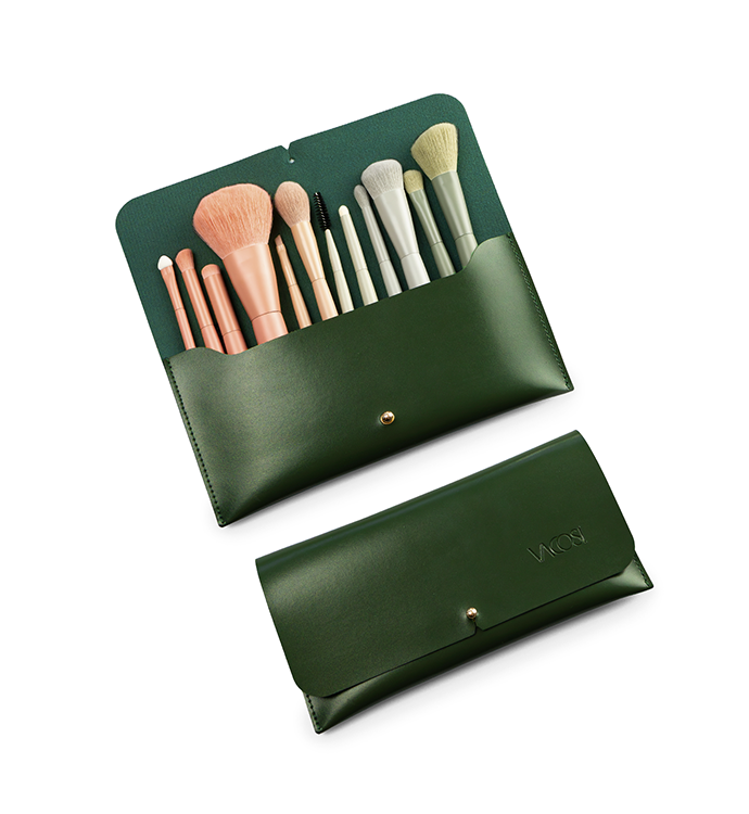 VACOSI | Bộ cọ cá nhân 12 cây và Ví xanh rêu #vacosi #makeup #cosmetic