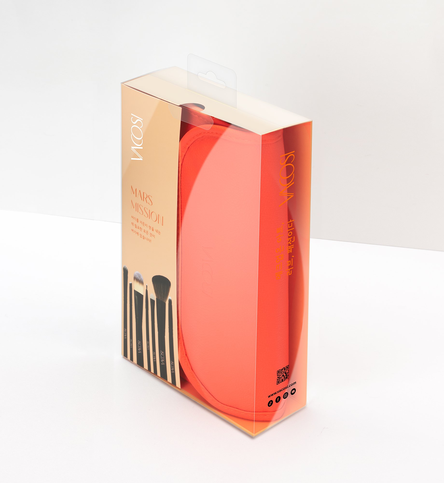 VACOSI MARS MISSION BRUSH SET 14 PCS Sắc cam nổi bật với hộp đựng trong suốt. Bộ cọ trang điểm MARS MISSION sở hữu 14 cây cọ chuyên dụng, lấy cảm hứng từ nguồn năng