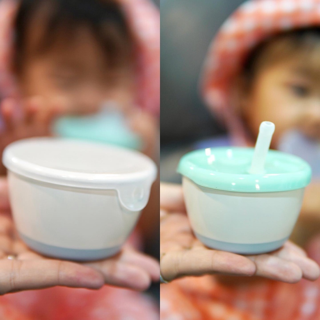 Bộ sản phẩm bao gồm 1 chén ăn dặm có nắp kèm muỗng, 1 cốc tập uống 3 giai đoạn. Bộ sản phẩm hỗ trợ toàn diện cho bé trong quá trình ăn dặm.