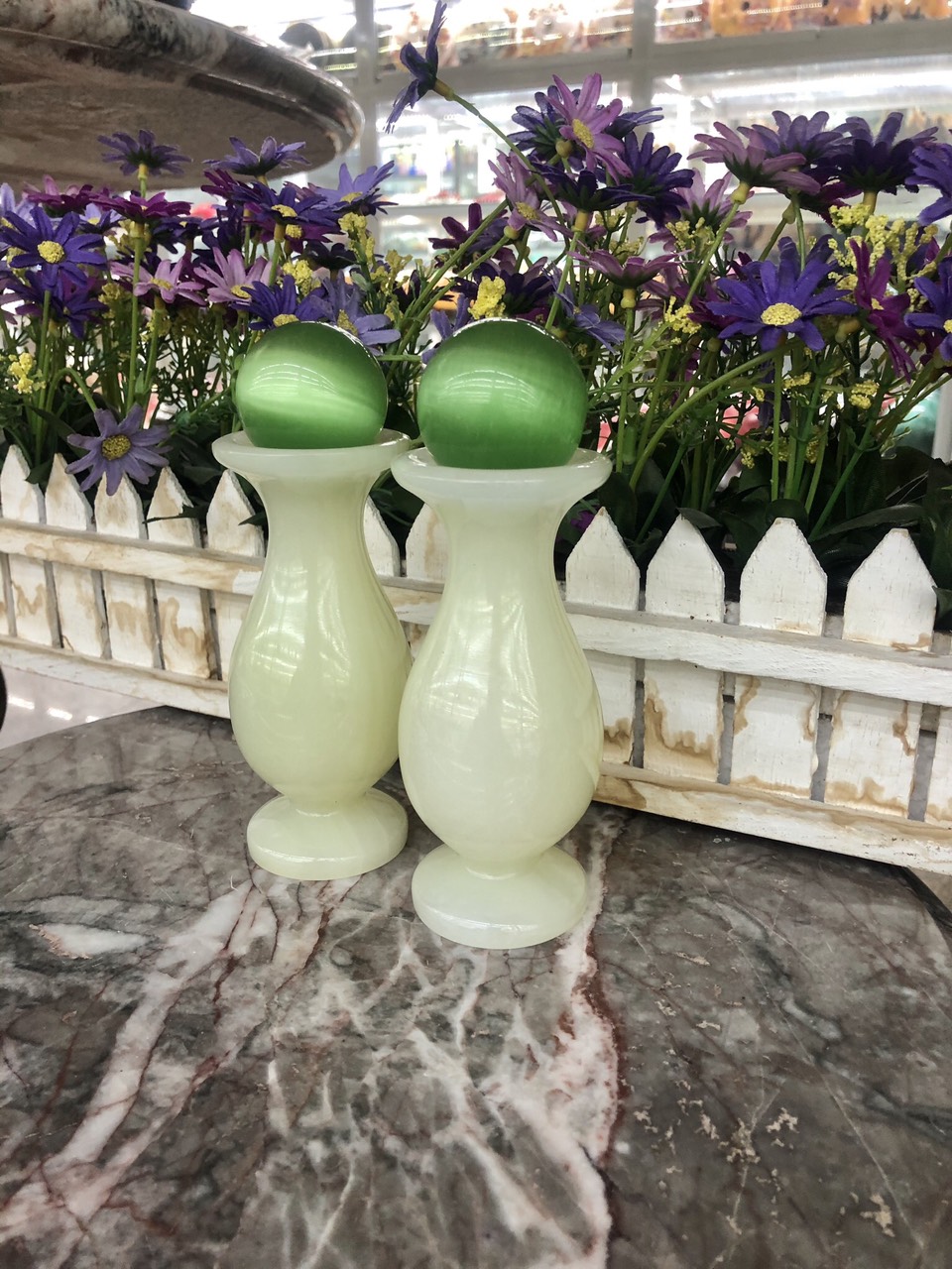 ✨Bộ combo cặp Lục Bình Lọ Hoa đá ngọc onyx kết hợp quả cầu phong thủy
