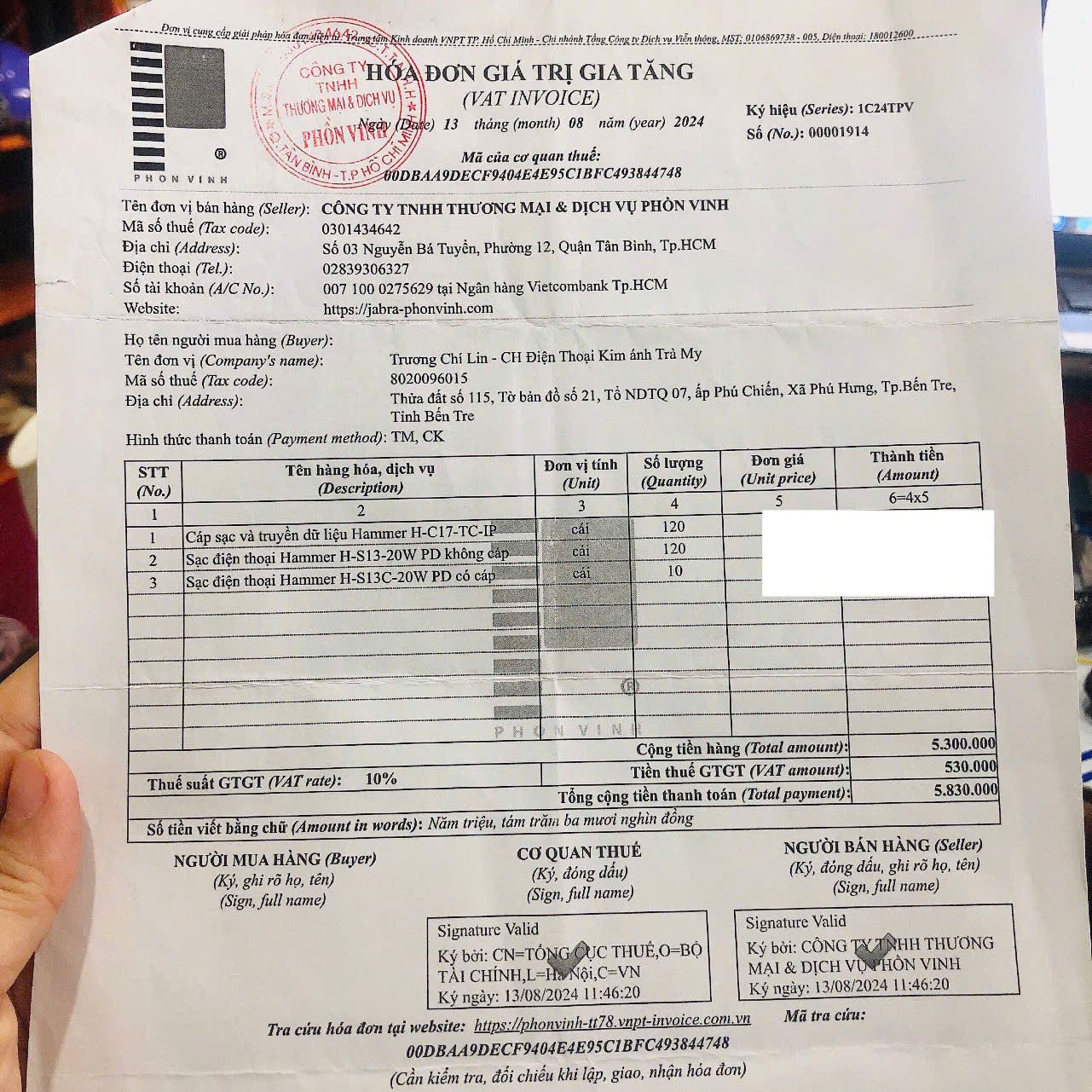 Sản phẩm có tem chống giả Phồn Vinh, tem nhà phân phối Kim Ánh bảo hành 12 tháng