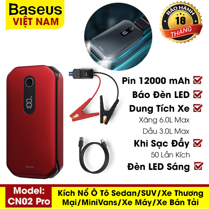 ✨ Bộ cứu hộ oto Baseus dung lượng 12000mAh công suất 1000A kiêm pin sạc dự phòng tích hợp màn hình kỹ thuật số [Hàng Chính Hãng]