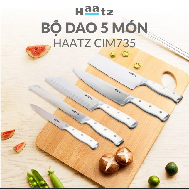 Bộ Dao 5 Chiếc Thép 5Cr15Mov Haatz CIM735 Tay Cầm Công Thái Học - Hàng Chính Hãng Bảo Hành 24 Tháng