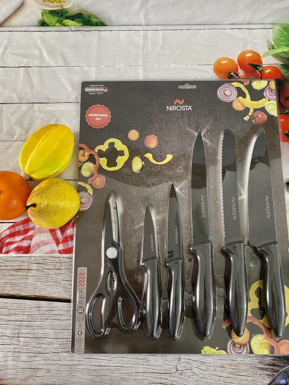 Bộ Dụng Cụ Dao KéoNirosta color sẽ giúp công việc làm bếp của bạn nhanh chóng, dễ dàng hơn. Bộ gồm đủ dụng cụ dao kéo làm bếp, được làm từ chất liệu cao cấp,