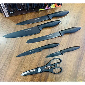 Bộ Dao Nhà Bếp 6 Món CKK103S6- 6P (Dao: 4 Cái, Kéo: 1 Cái, Dụng Cụ Gọt Vỏ Trái Cây: 1 Cái )- Màu Đen có thiết kế sang trọng, bắt mắt và rất hiện