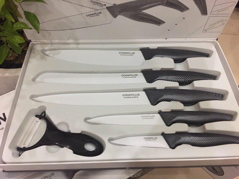 Bộ 5 dao phủ sứ Lock&lock Hàn Quốc Cookplus CKK101S01 (Tặng dụng cụ gọt củ quả)