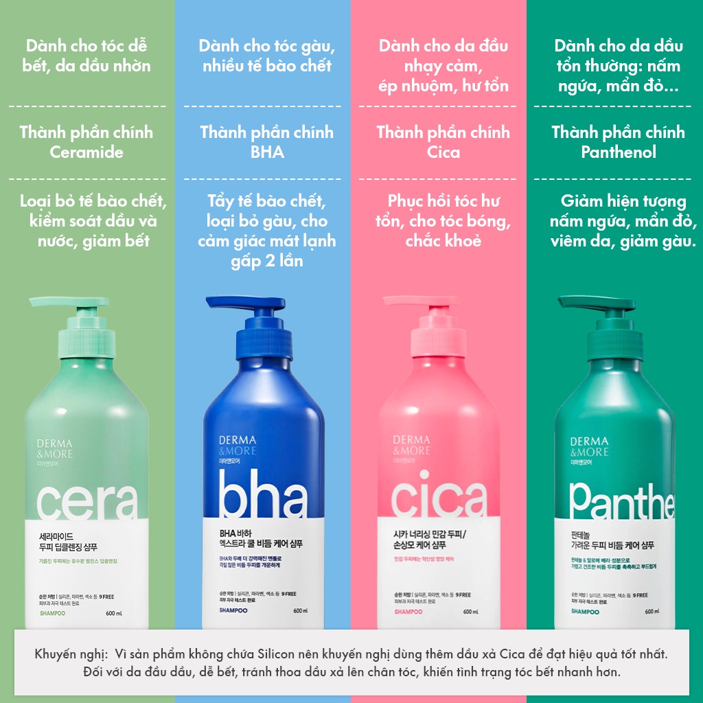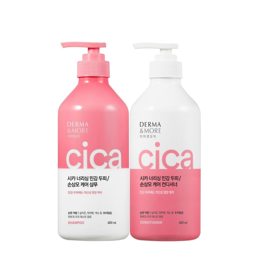 ✨Bộ dầu gội và dầu xả phục hồi tóc hư tổn Derma & More CICA dưỡng tóc bóng khỏe cho da đầu nhạy cảm 600ml