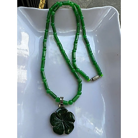 Bộ Dây Chuyền Trang Sức Sợi Trúc Kiểu Xanh Phối Mặt Bông Hoa Mai Đá Cẩm Thạch Tự Nhiên Xanh Ngọc Tự Nhiên Đậm Đẹp Nữ đeo lên cổ đẹp sang quà tặng Mẹ tặng vợ người thân ý nghĩa ạ