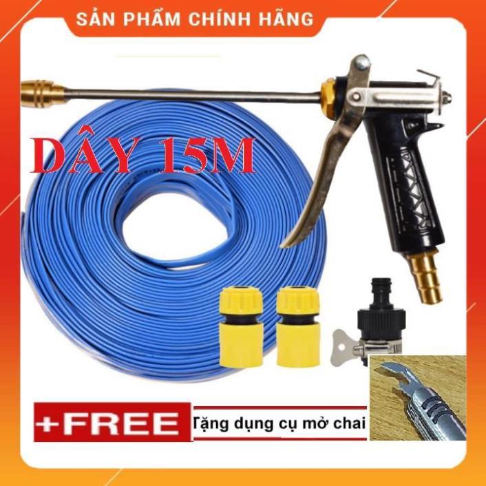 ✨️ Bộ dây vòi xịt nước rửa xe, tưới cây , tăng áp 3 lần, loại 15m 206318 đầu đồng,cút,nối đen+ mở chai