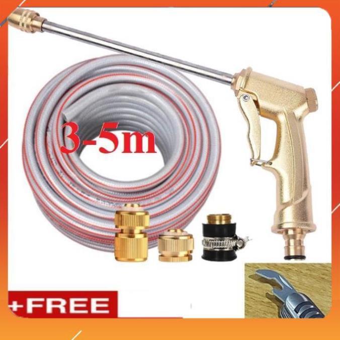 ✨Bộ dây vòi xịt nước rửa xe,tưới cây ,tăng áp 3 lần,loại 3m,5m 206701-3 đầu đồng,cút đồng,nối đồng+ mở chai