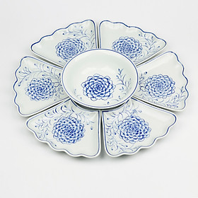 Bộ đồ ăn men lam vẽ hoa đào Gốm sứ Bát Tràng cao cấp không chì Bộ đồ ăn gồm 15 món như hình 6 bát cơm 1 bát mắm 1 đĩa muối 1 đĩa